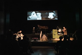 Wir waren immer schon fasziniert von dieser schlafwandlerischen Selbstverständlichkeit tausendfach verinnerlichter Handgriffe meisterhafter Handwerker. Drei Grenzgänger des Leerraums schaffen live und vor Publikum drei Gefäße. Der Keramiker Thomas Bohle, der Holzkünstler Ernst Gamperl und der Musiker Nik Bärtsch meditieren eine langsam sich aus dem Material erhebende Gestalt zwischen Nichts und Etwas. (Kaum jemand auf der Welt kann so große doppelwandige Gefäße drehen wie Thomas, kaum jemand so hauchdünne, lichtdurchlässige Schalen aus Holz wie Ernst.)