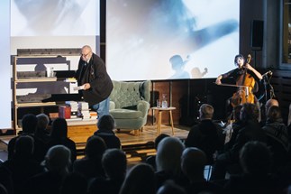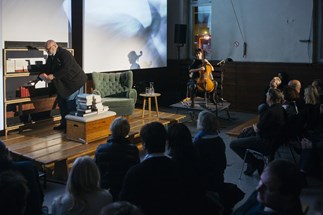 Der renommierte österreichische Essayist Franz Schuh improvisierte über das Thema. Er bewundert, kommentiert, stellt Nachbarschaften her, Wahlverwandtschaften, reiht ein, verbannt, rückt in die Mitte. Auf der Bühne entsteht die physische Spiegelung eines Reflexionsprozesses. Performance als Bildhauerei mit Literatur.