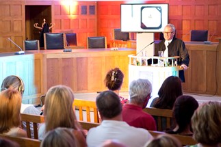 Aufführungsort: Schwurgerichtssaal des Vorarlberger Landesgerichts in Feldkirch. Ein ausverkaufter Abend voller brillanter Rhetorik.