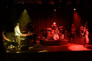 Das klassische Jazz-Trio in doppelter Besetzung. Zwei Meister kommen mit ihren Meisterschülern, ein Vorgänger mit seinem Nachfolger. Der eine spielt, der andere wartet jeweils auf seinen Einsatz und übernimmt im Flug. Mitten im Stück.