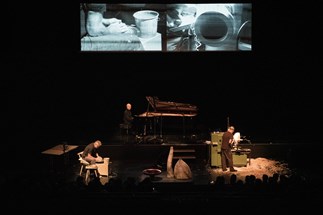 Wir waren immer schon fasziniert von dieser schlafwandlerischen Selbstverständlichkeit tausendfach verinnerlichter Handgriffe meisterhafter Handwerker. Drei Grenzgänger des Leerraums schaffen live und vor Publikum drei Gefäße. Der Keramiker Thomas Bohle, der Holzkünstler Ernst Gamperl und der Musiker Nik Bärtsch meditieren eine langsam sich aus dem Material erhebende Gestalt zwischen Nichts und Etwas. (Kaum jemand auf der Welt kann so große doppelwandige Gefäße drehen wie Thomas, kaum jemand so hauchdünne, lichtdurchlässige Schalen aus Holz wie Ernst.)